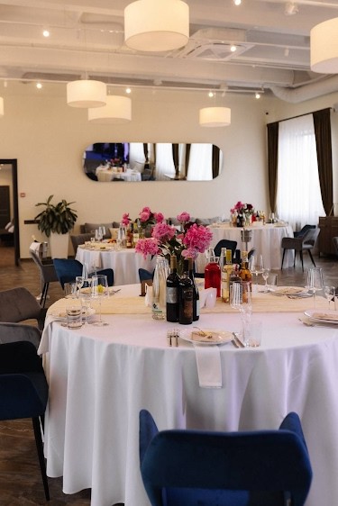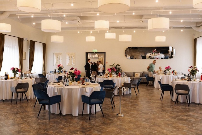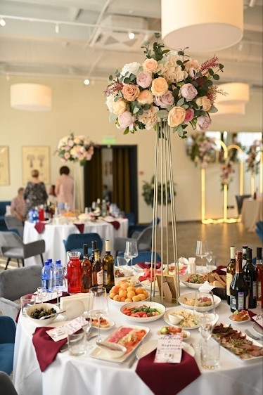 Современный универсальный банкетный зал для любого формата: свадьбы, юбилеи, корпоративы, презентации, конференци, семейные праздники.
